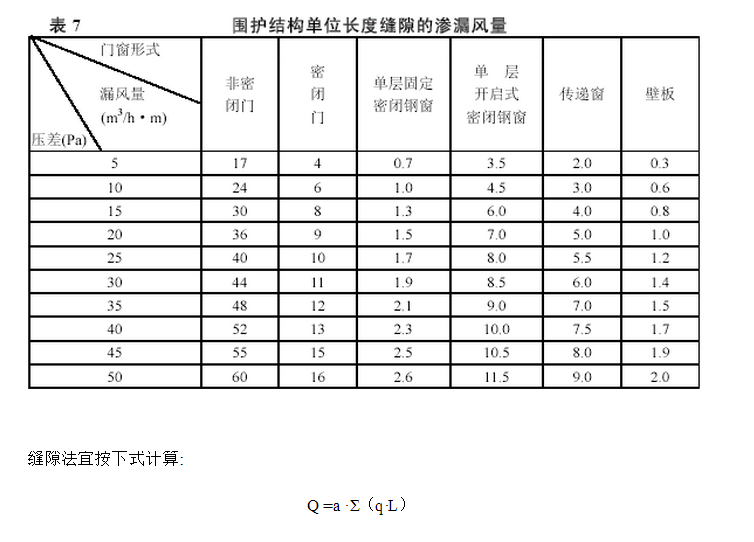 1 選用縫隙法來(lái)核算滲漏風(fēng)量,既思考了潔凈室圍護(hù)結(jié)構(gòu)的氣密性,又思考了室內(nèi)保持不一樣的壓差值所需的正壓風(fēng)量。因而,縫隙法比按房間的換氣次數(shù)預(yù)算法較為合理和準(zhǔn)確。 單位長(zhǎng)度縫隙滲漏空氣量用公式核算是對(duì)比艱難的,一般是經(jīng)過(guò)不一樣型式的門(mén)、窗進(jìn)行屢次實(shí)驗(yàn)的數(shù)據(jù)核算后得出的。表 7是對(duì)G內(nèi)潔凈室的 20多種常用的門(mén)、窗在實(shí)驗(yàn)室進(jìn)行了很多的實(shí)驗(yàn),獲得的數(shù)據(jù),盡管這些年潔凈室門(mén)窗的資料和型式有很大的開(kāi)展,但現(xiàn)在還有有些潔凈室依然選用鋼制密封門(mén)窗。故表中數(shù)據(jù)仍可供規(guī)劃時(shí)參閱。